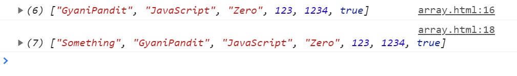 Adding new elements to the beginning of array (unshift() method) 1
