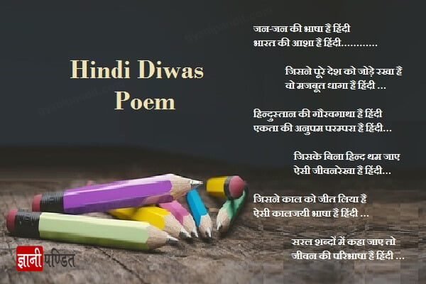 इसलिए हिन्दी के प्रति ज्यादा से ज्यादा लोगों को जागरूक करने के उद्देश्य से 14 सितंबर को हिन्दी दिवस मनाया जाता है। हिन्दी, दुनिया में बोली जाने वाले मुख्य भाषाओं में से एक है साथ ही हम सभी भारतीयों के सम्मान और स्वाभिमान की भाषा है। वहीं इस तरह की कविताएं लोगों के अंदर न सिर्फ हिन्दी भाषा के प्रति सम्मान पैदा करती हैं, बल्कि इसकी अहमियत को समझने में भी मद्द करती हैं।