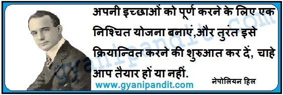 Desire is the starting point of all achievement.A goal is a dream with a deadline.All achievements, all earned riches, have their beginning in an idea.All the breaks you need in life wait within your imagination, Imagination is the workshop of your mind, capable of turning mind energy into accomplishment and wealth.Any idea, plan, or purpose may be placed in the mind through repetition of thought.Big pay and little responsibility are circumstances seldom found together.Action is the real measure of intelligence.Create a definite plan for carrying out your desire and begin at once, whether you ready or not, to put this plan into action.Don’t wait. The time will never be just right.Happiness is found in doing, not merely possessing.